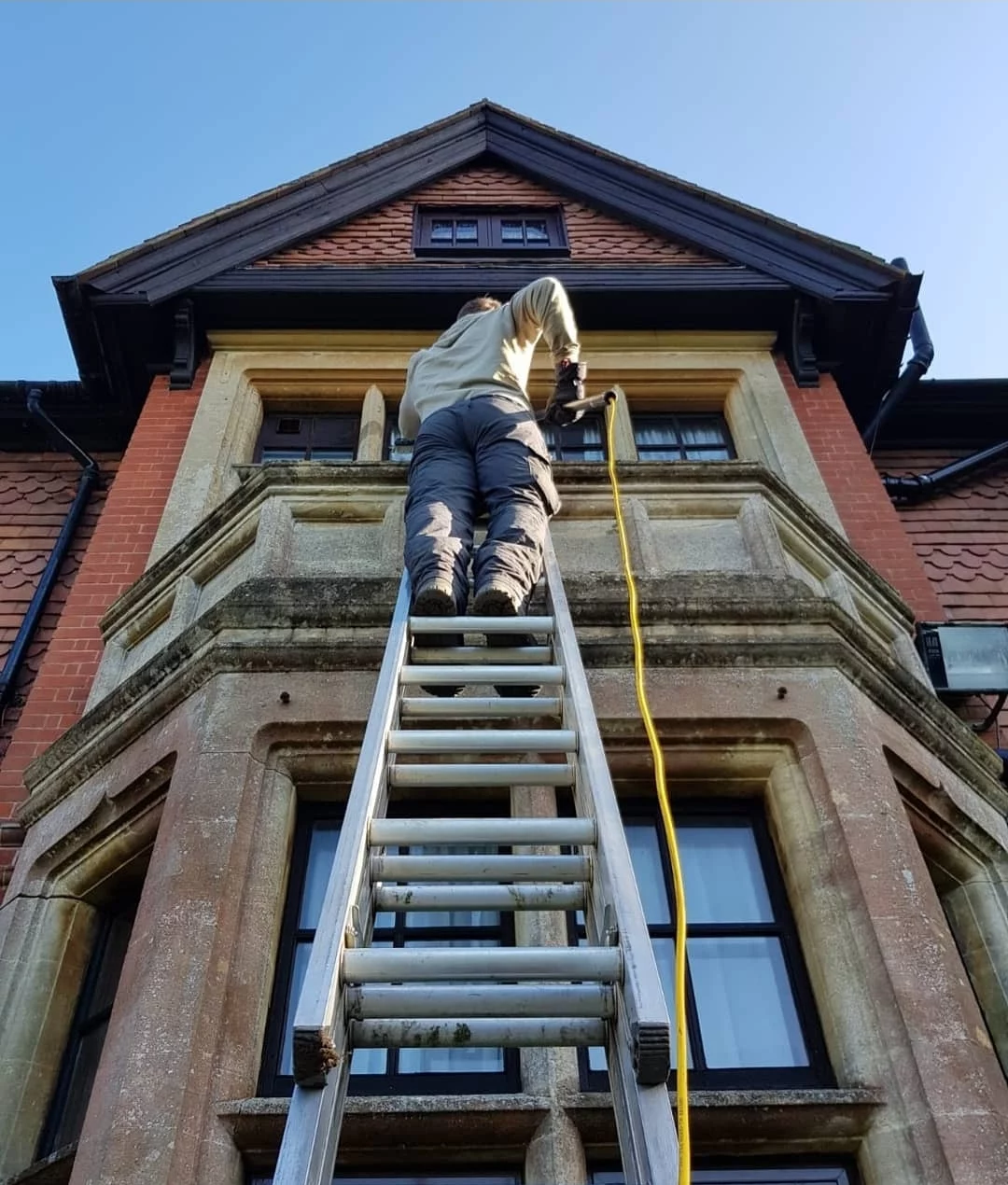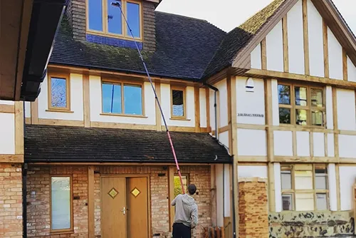 All of our window cleaning is carried out using the latest in water-fed pole technology. This means no ladder leaning against your property or digging into your lawn, no solvents or detergents that are harmful to the environment, and no risk of anyone falling and hurting themselves on your property.